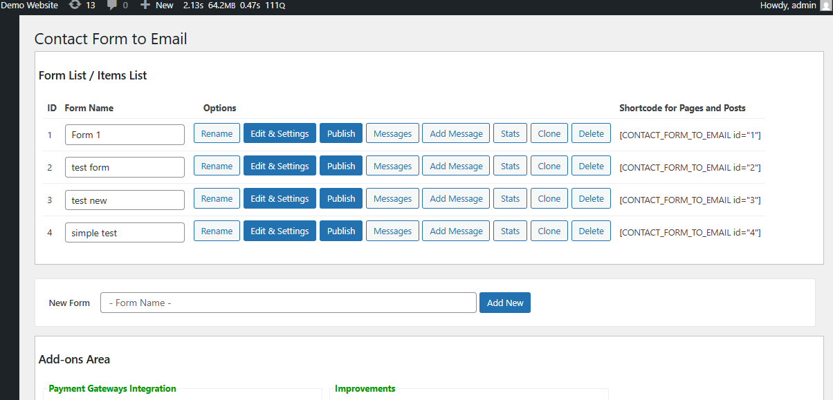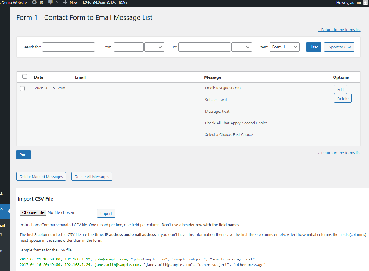 Contact Form to Email Messages List