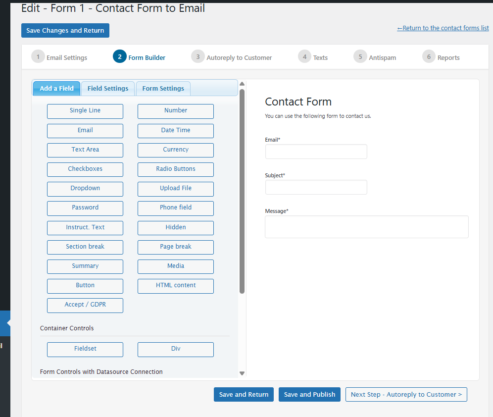 - Form Validation: Set validation rules for each contact form field. Keep your data clean.