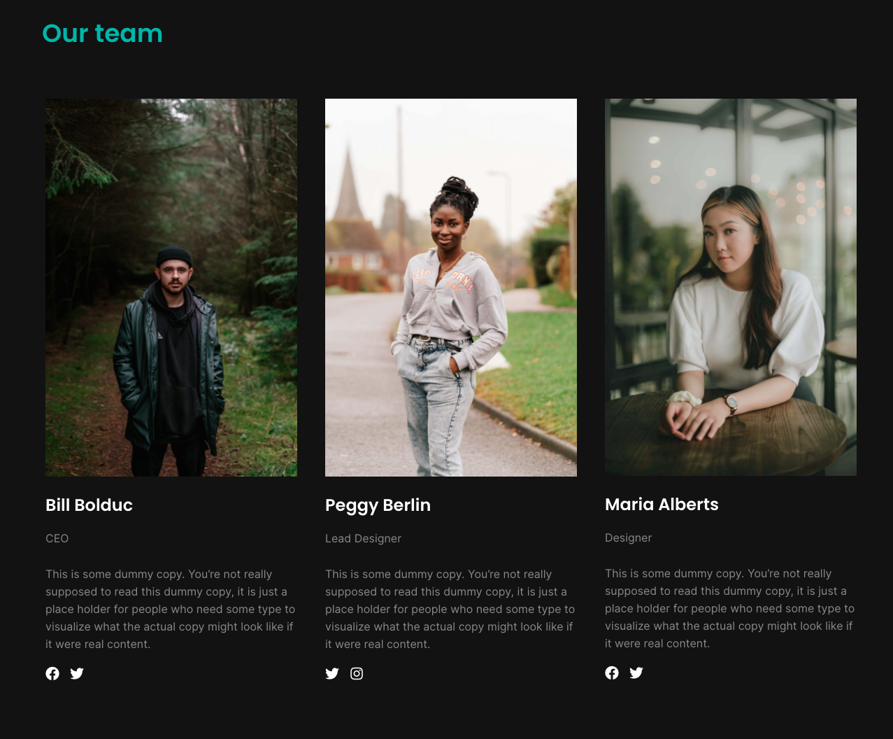 - Team Members – Showcase your team with social media icons